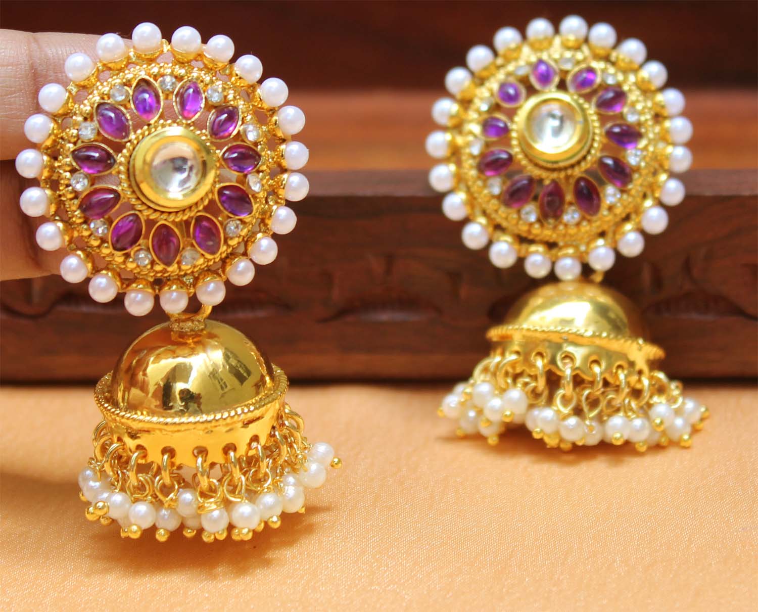 Gold Plated Pearl Stone Jhumka Earrings T2553