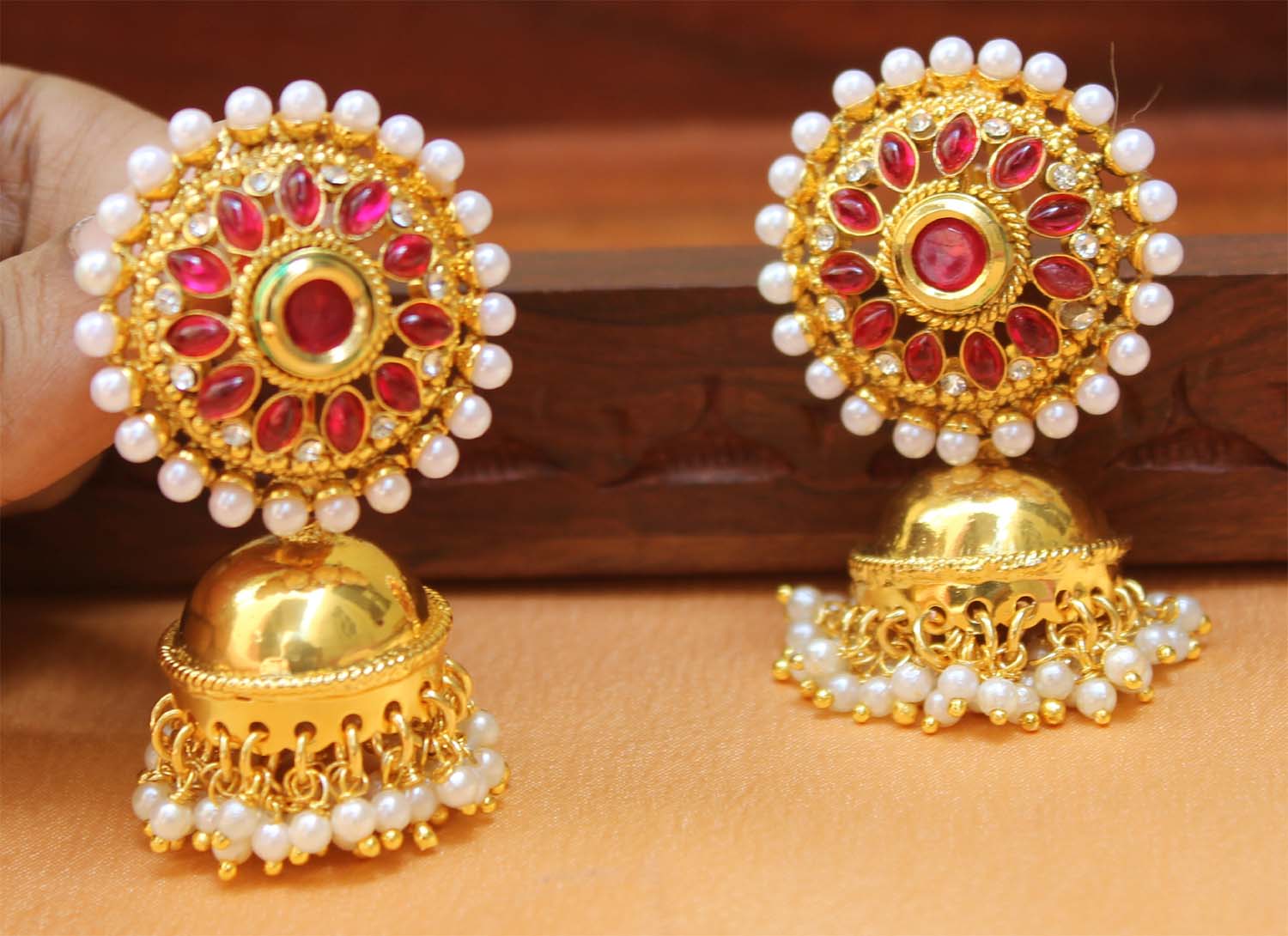 Gold Plated Pearl Stone Jhumka Earrings T2555