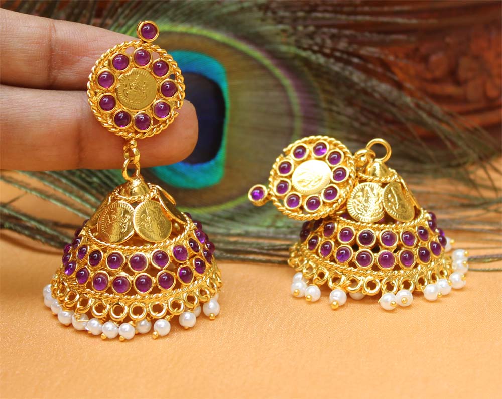 Gold Plated Temple Kasu Jhumka Earrings T2524