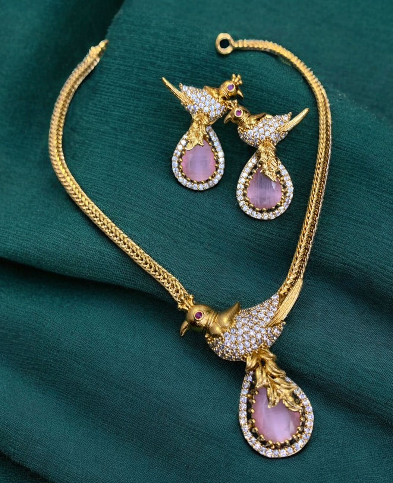 Matte Finish CZ Stone Peacock Necklace Set T2937