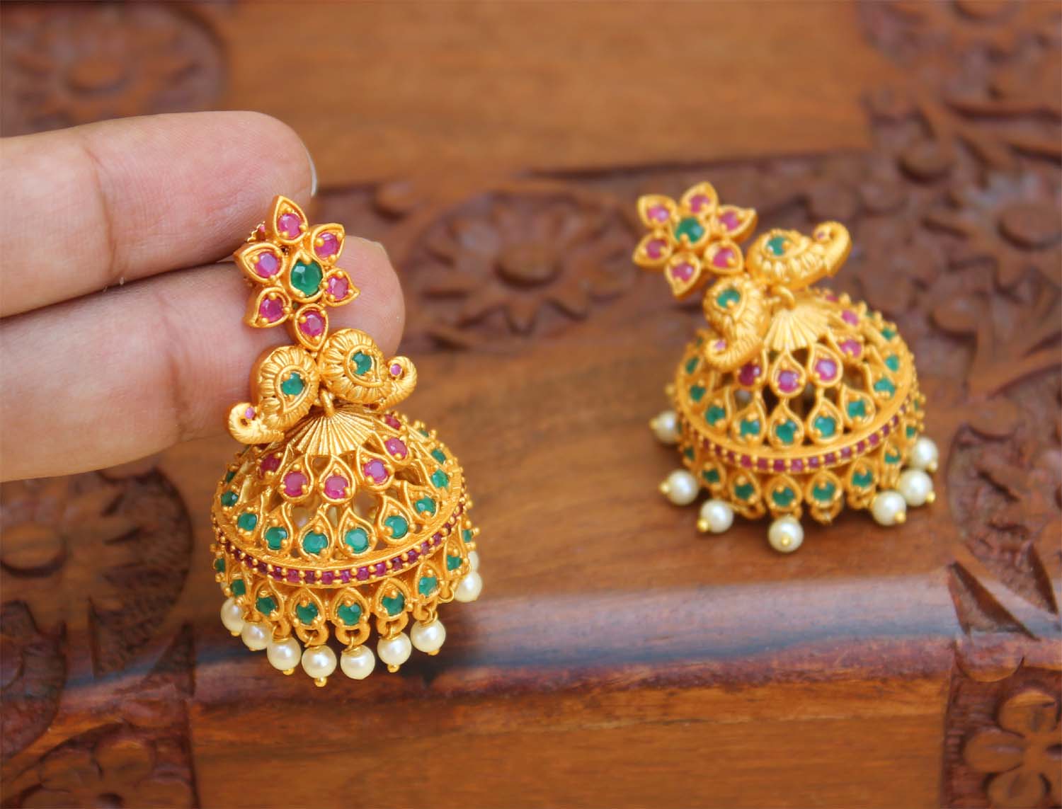 Matte Finish Mango Stone Jhumka Earrings T2780