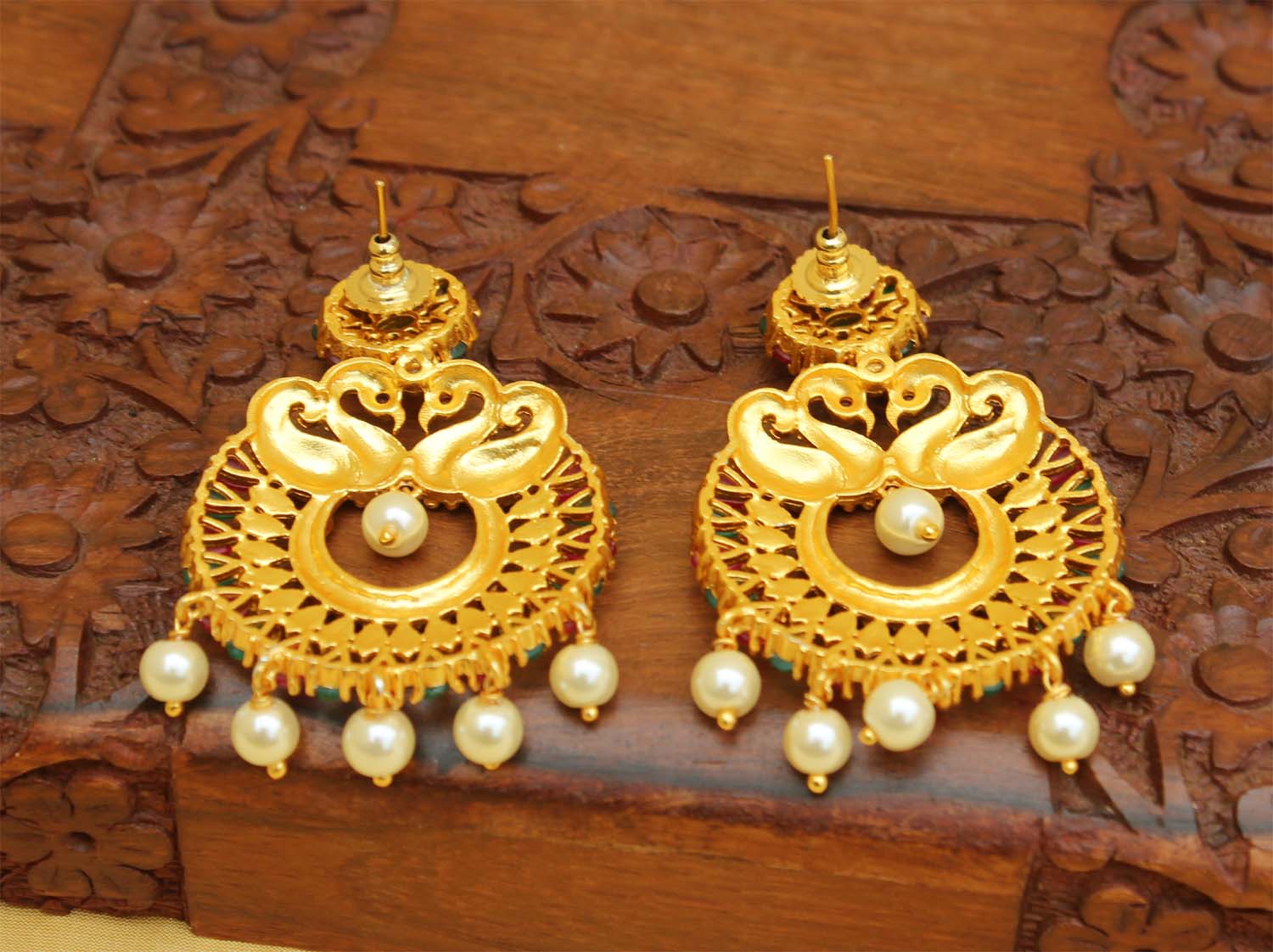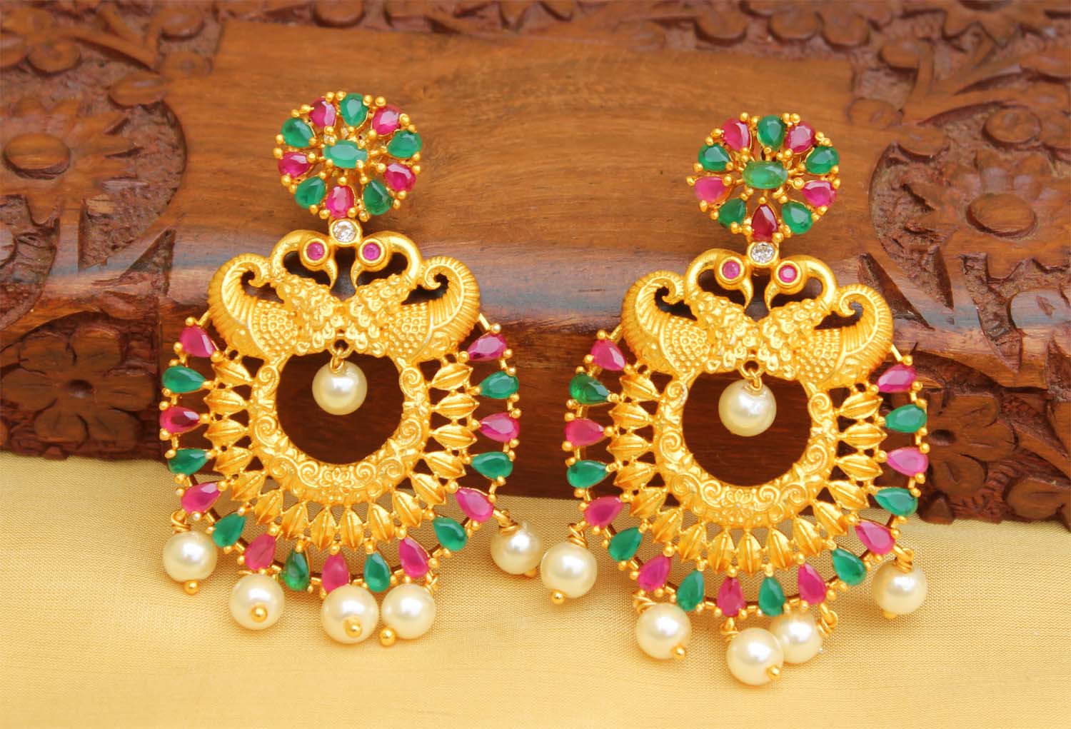 Matte Finish Peacock Multi Color Stone Earrings T2484