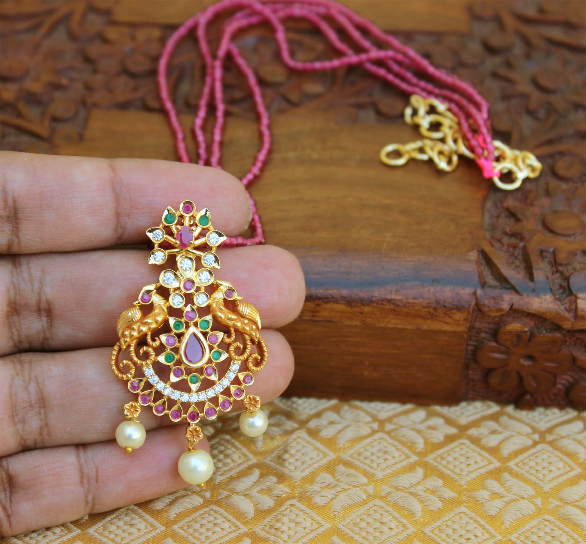 Matte Finish Peacock Pendant Beads Necklace T2281