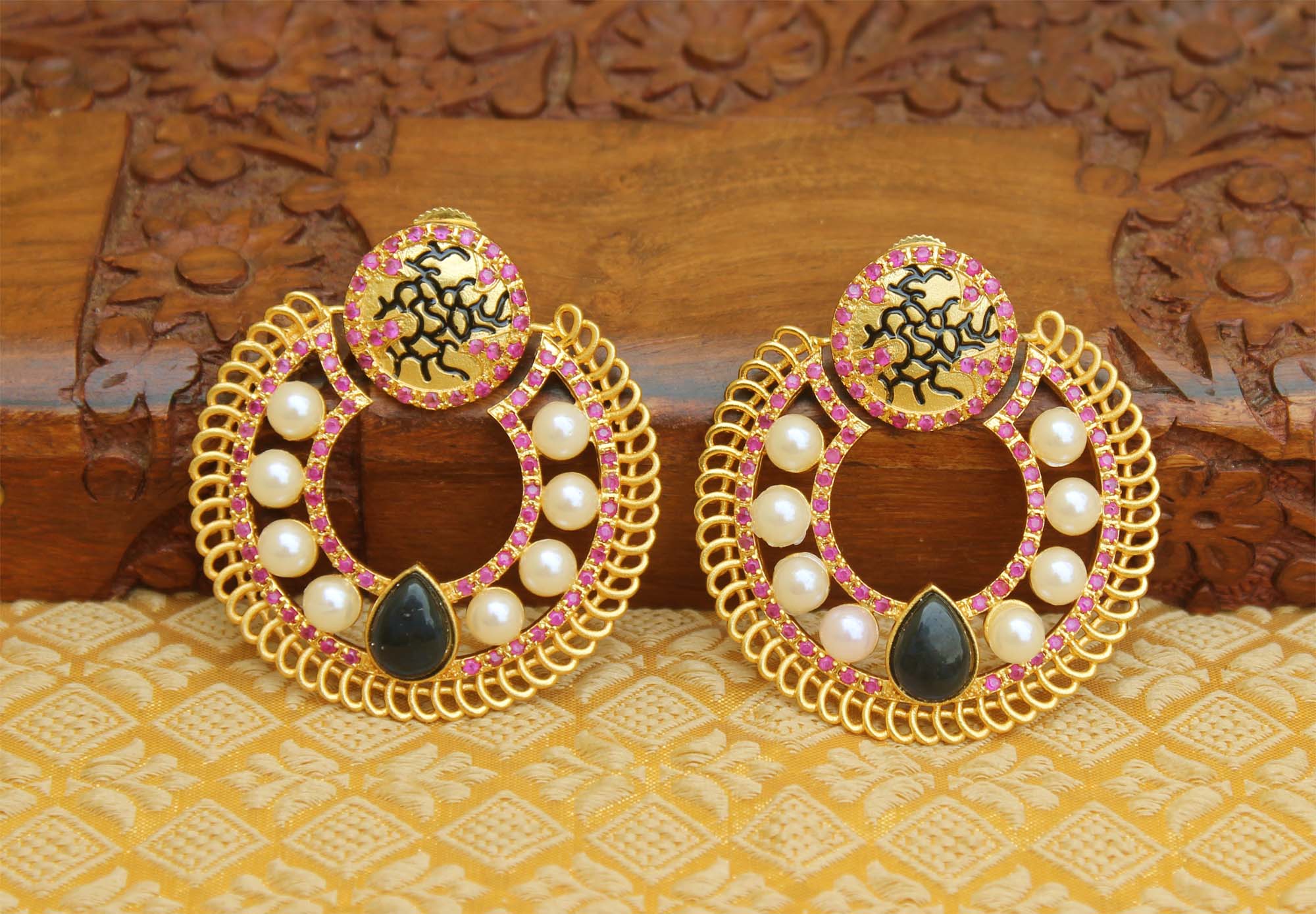 Matte Finish Pearl Stone Earrings T2837