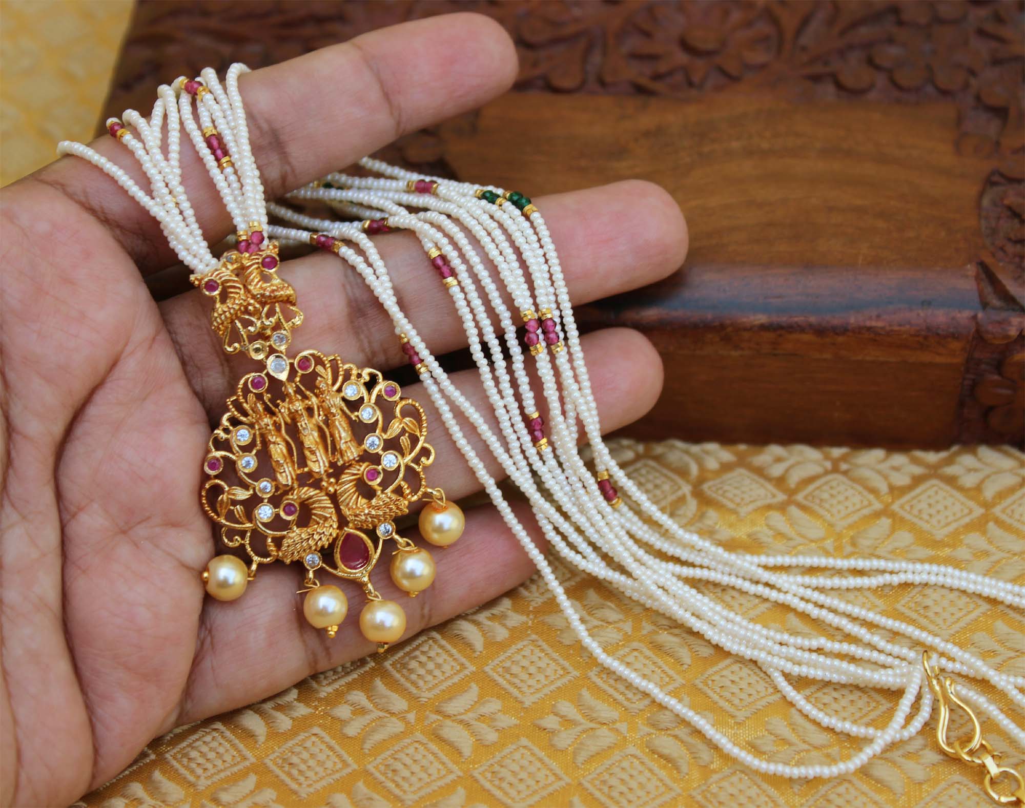 Matte Finish Ram Parivar Beads Necklace T2271