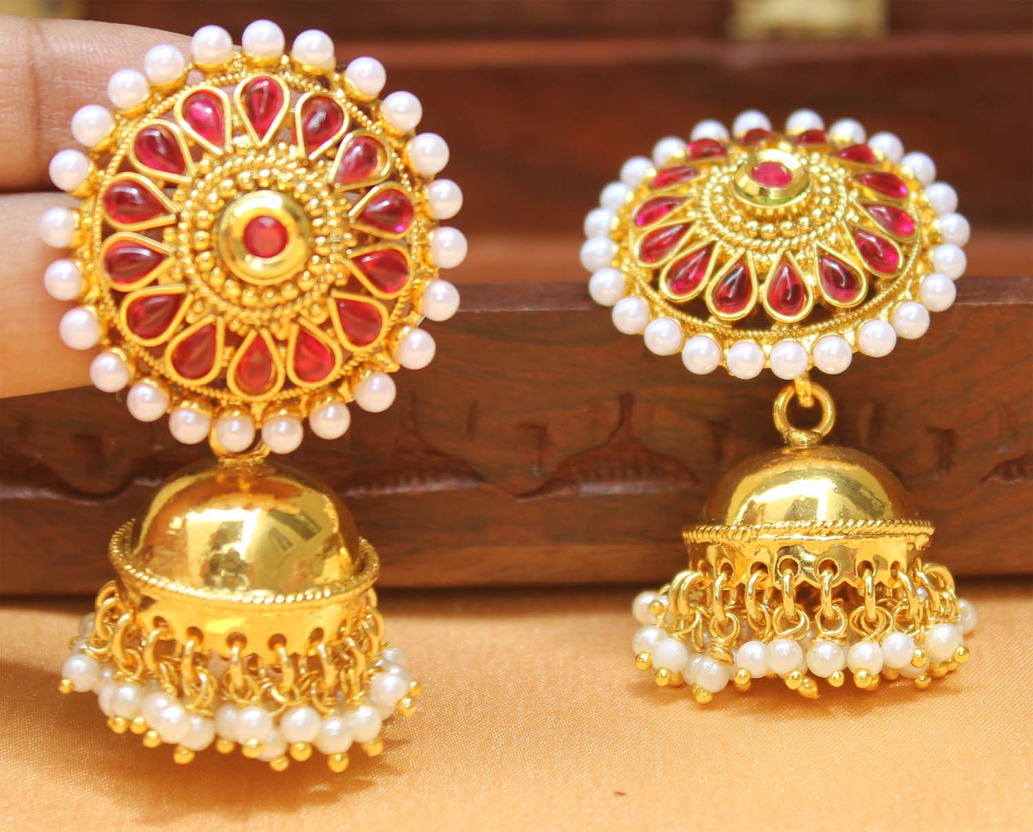 Pearl Stone Gold Plated Jhumka Earrings T2563