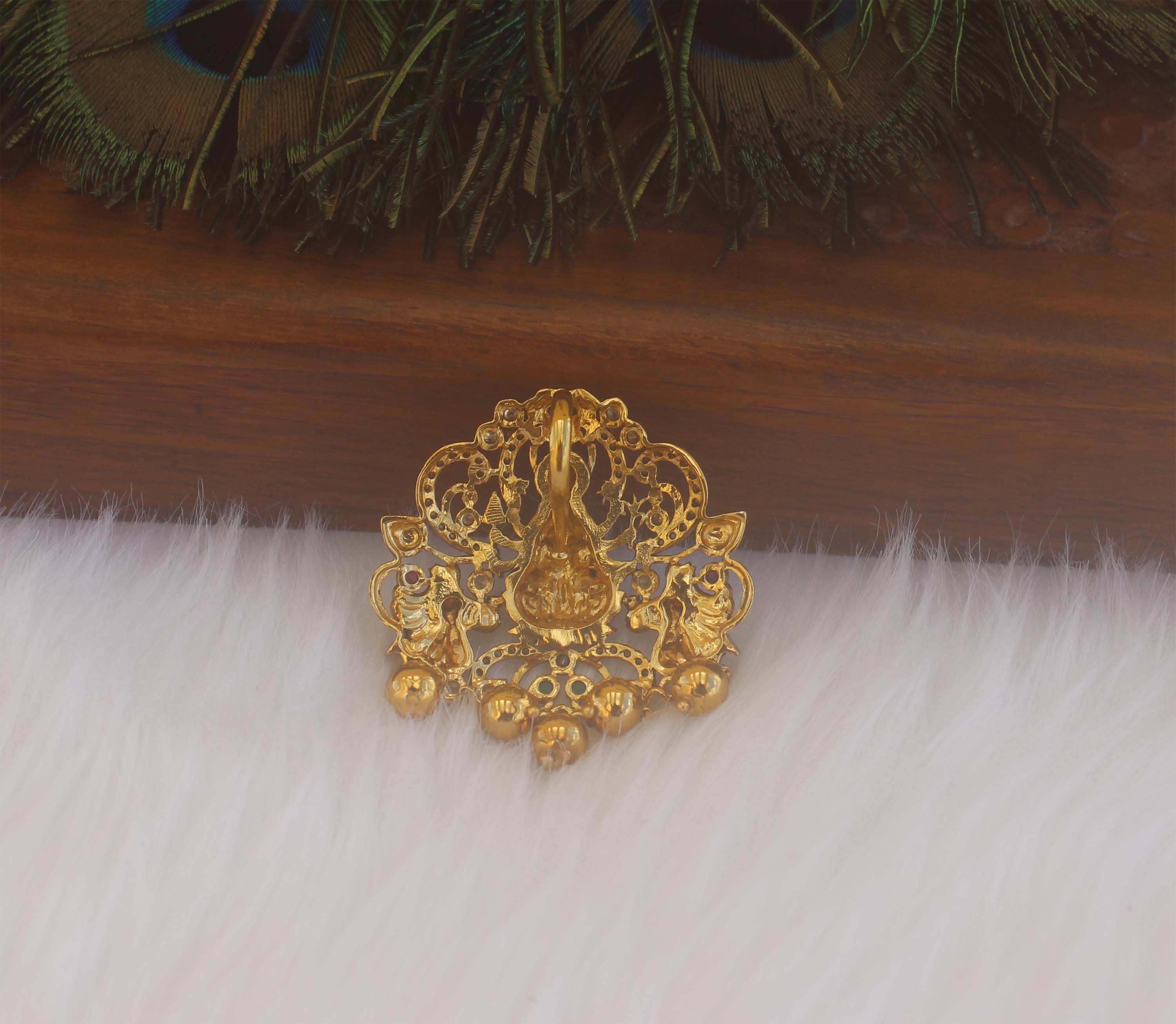 Stylish Matte Finish Temple Peacock Pendant T2388